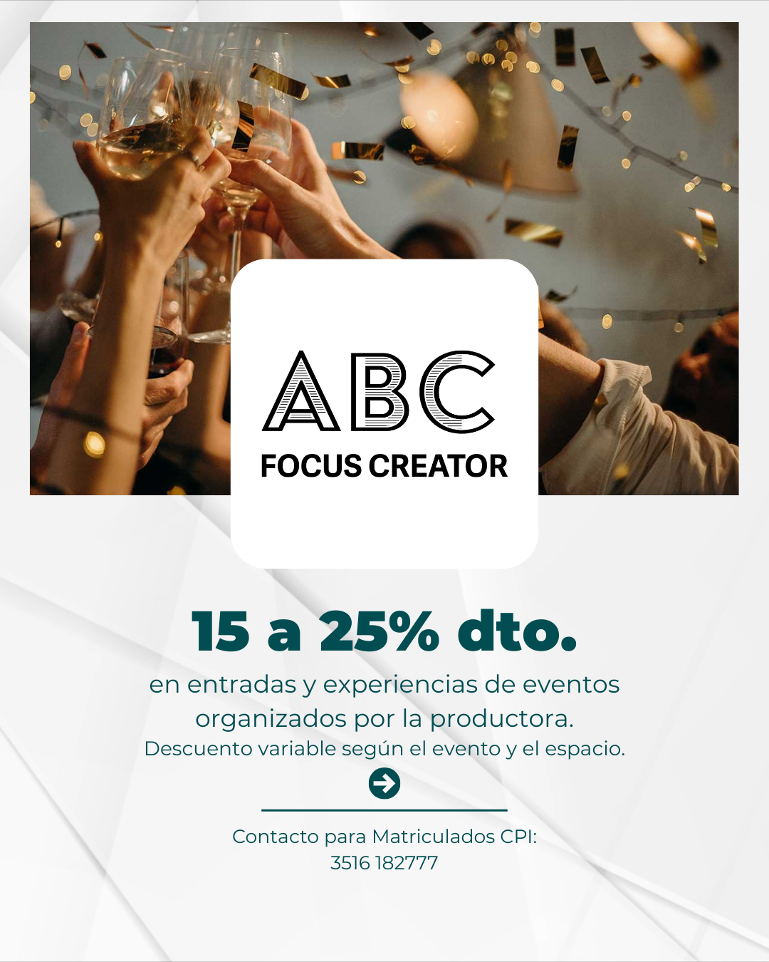 Desde un 15% a 25% dto. en eventos producidos por ABC Focus Creator.