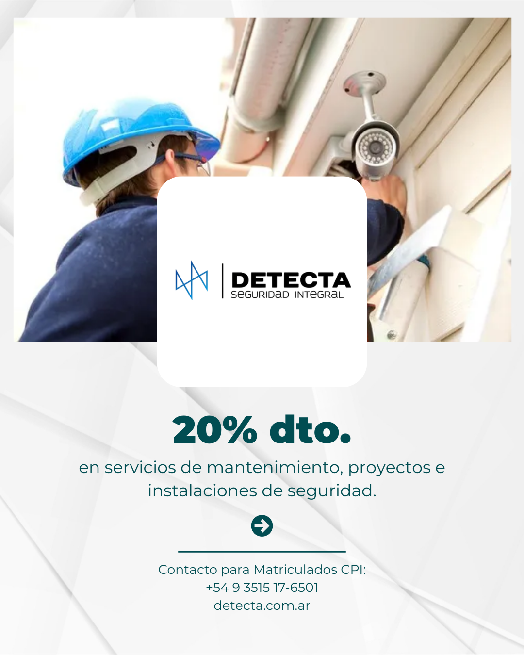 20% dto. en mantenimiento preventivo de consorcios y edificios (tableros eléctricos, detección y extinción de incendios); 20% dto. en proyectos e instalación de sistemas de protección contra incendios, con relevamiento, planos, ejecución y certificación profesional; 15% dto. en instalación de sistemas CCTV; o 10% dto. en reparación de bombas centrífugas.
