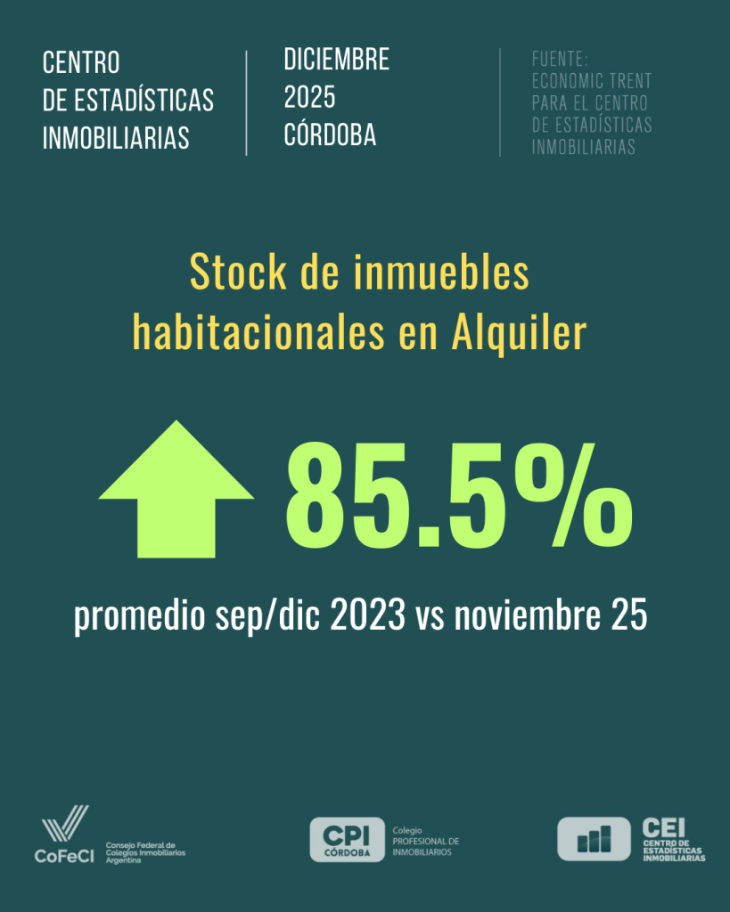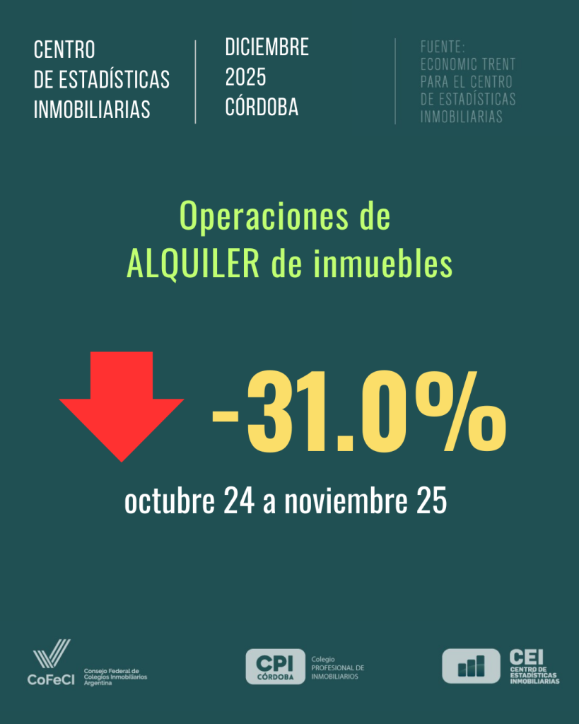 Los datos son parte del relevamiento mensual del Centro de Estadísticas Inmobiliarias (CEI) del Colegio Profesional de Inmobiliarios (CPI) en su informe correspondiente a noviembre de 2025, que muestra una reconfiguración profunda del mercado de alquileres en Córdoba.
