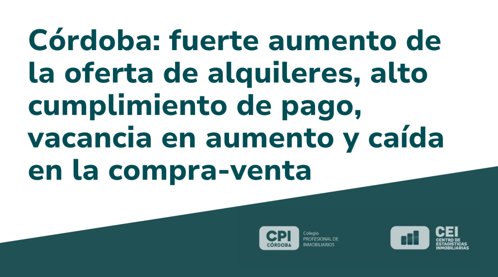 Córdoba: fuerte aumento de la oferta de alquileres, alto cumplimiento de pago, vacancia en aumento y caída en la compra-venta
