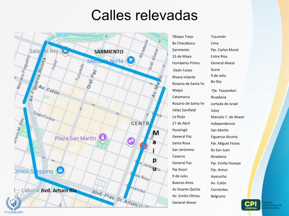El Colegio Profesional de Inmobiliarios de Córdoba (CPI) encargó a la firma CCA Consulting – Consultora Integral para Empresas la realización de un relevamiento exhaustivo sobre el estado de ocupación de locales comerciales en el área central de la ciudad.