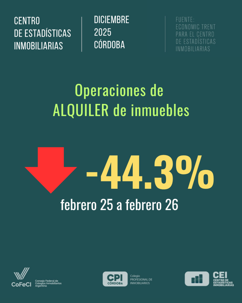 - Las operaciones de alquiler disminuyeron un 44,3% interanual