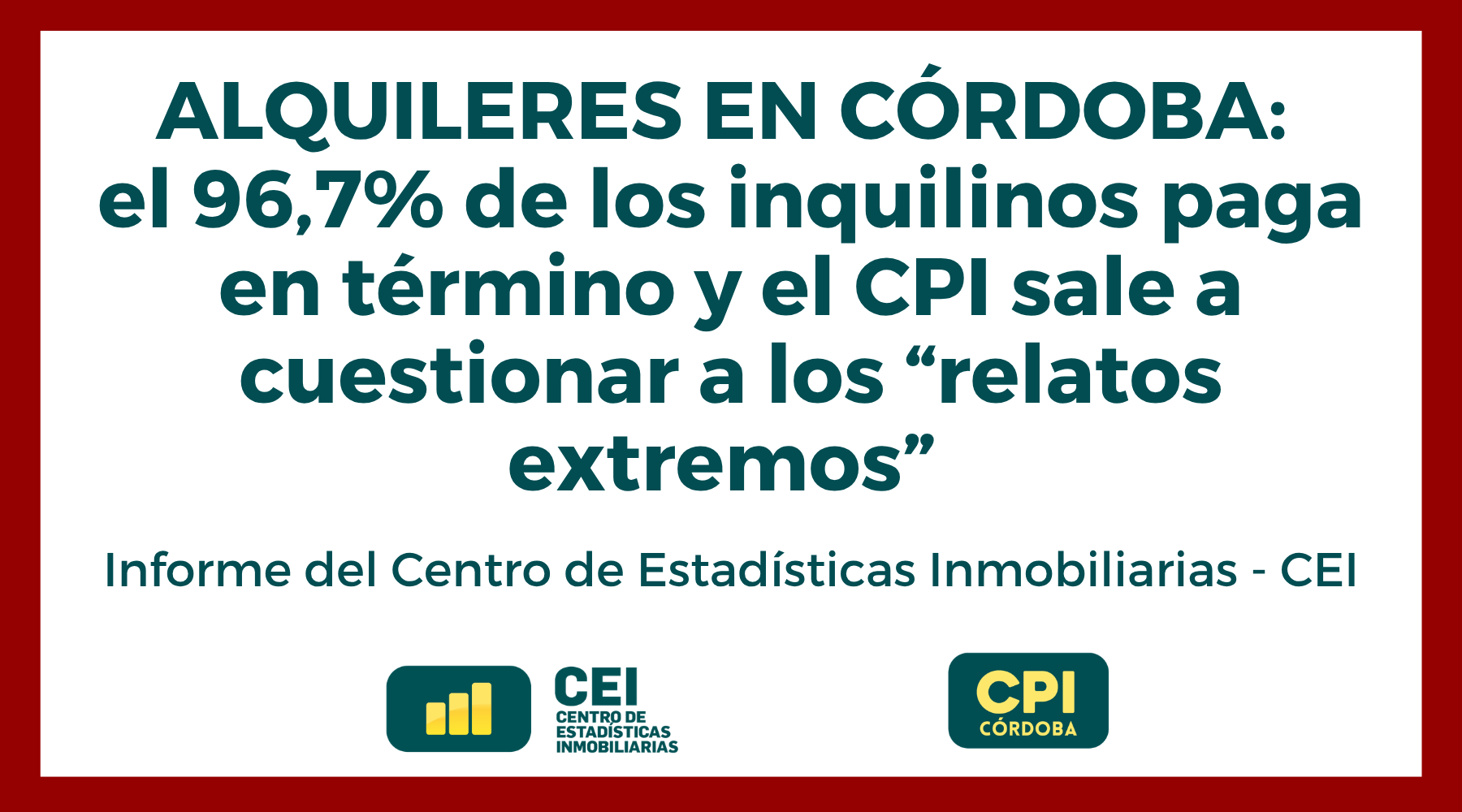 ALQUILERES EN CÓRDOBA: el 96,7% de los inquilinos paga en término y el CPI sale a cuestionar a los “relatos extremos”