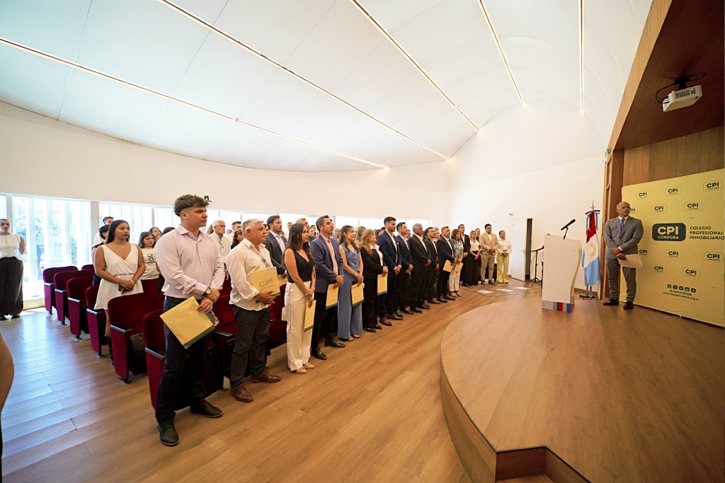 El evento contó con la presencia de las principales autoridades del Colegio Profesional de Inmobiliarios CPI: nuestro Presidente Lucas Péndola, Vicepresidente Carolina Fiore, Secretario Emilio Fuentes, entre otros directivos más. También participaron familiares e invitados especiales, acompañando a los nuevos profesionales en este importante paso.